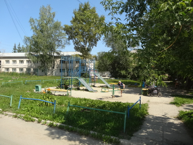 У дома тихий зеленый двор с детской площадкой