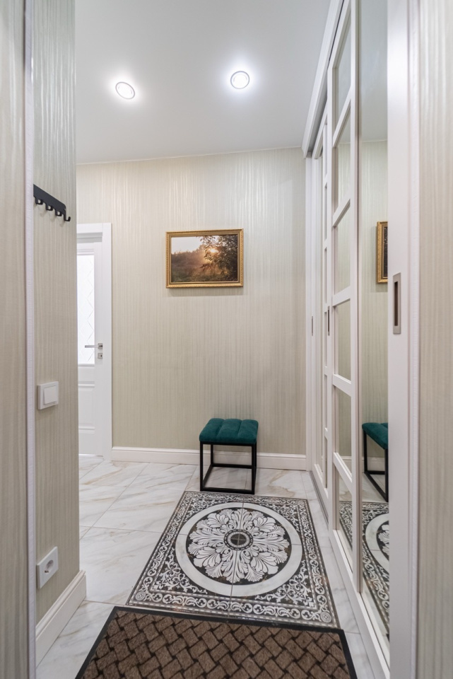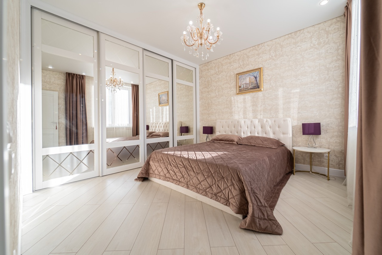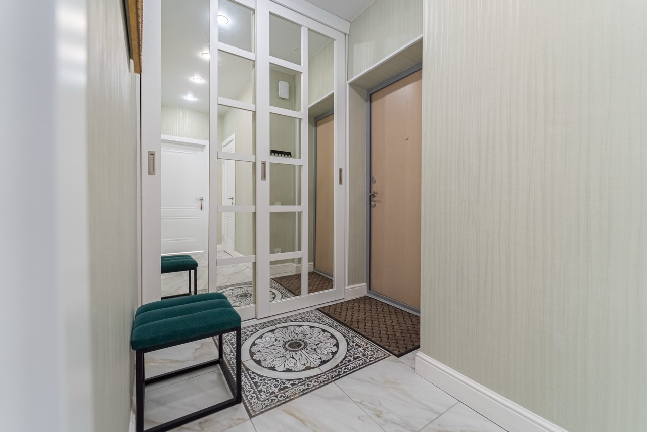 В спальне и в прихожей вместительные встроенные шкафы.