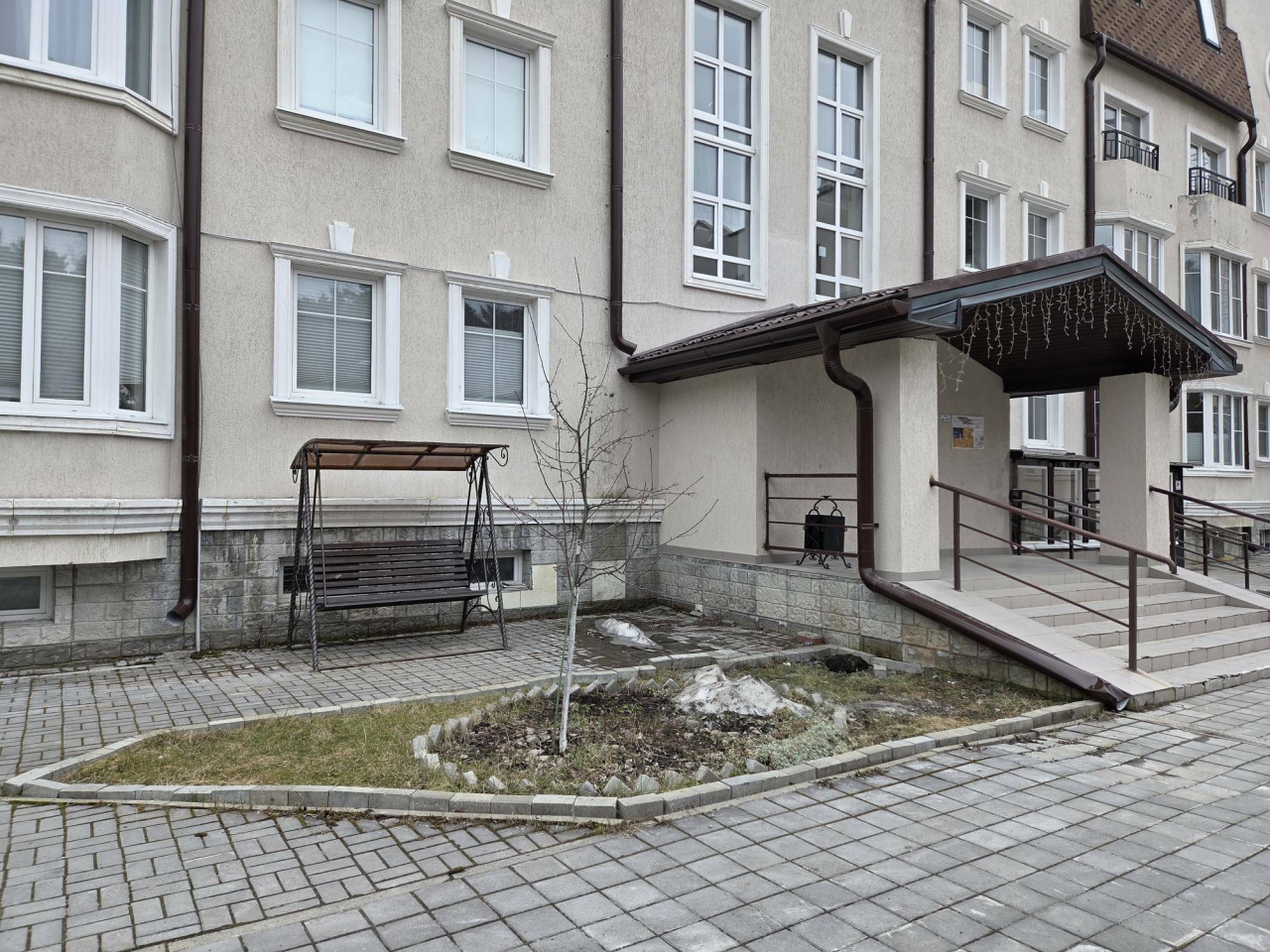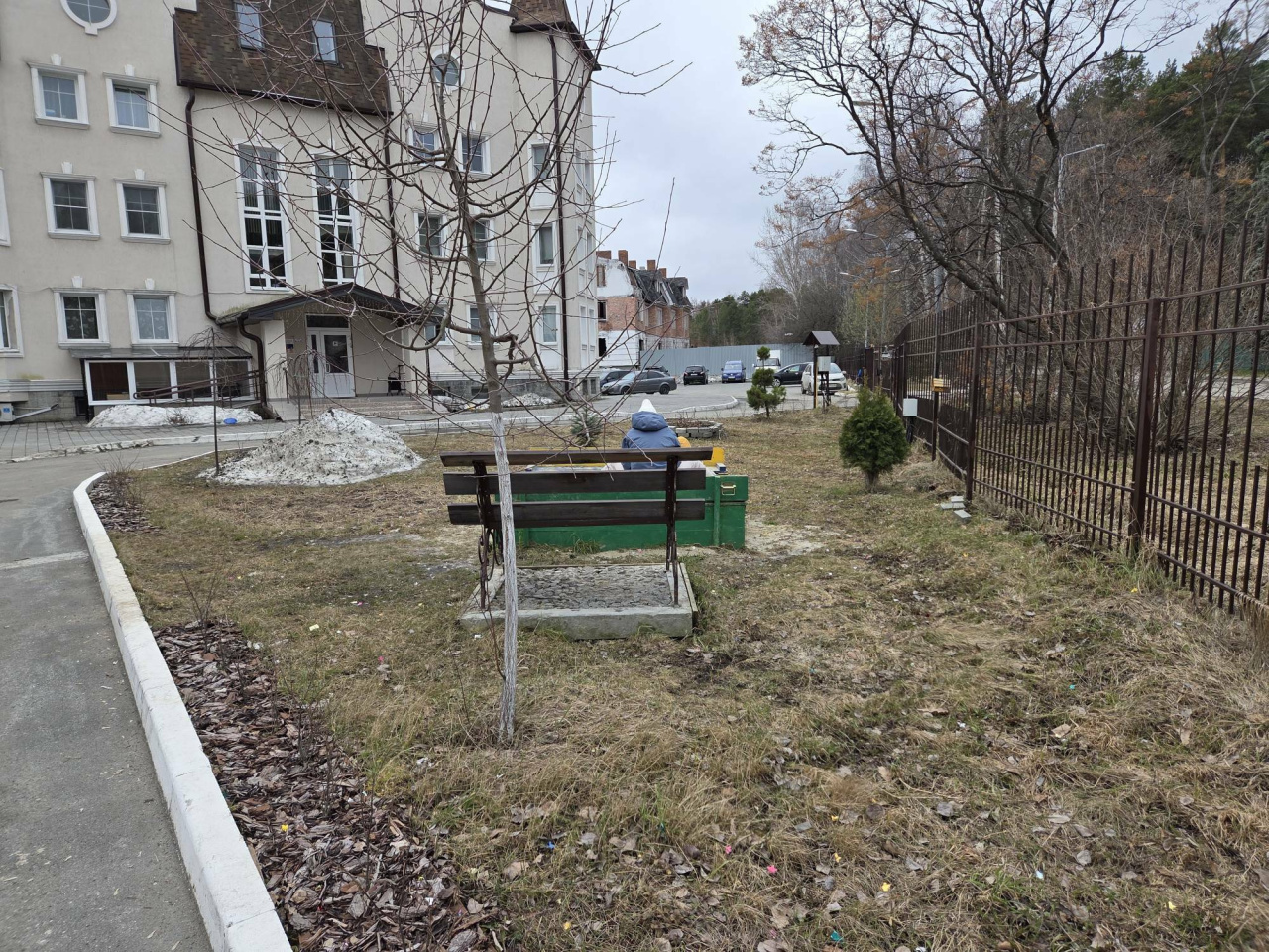 У дома своя закрытая, огражденная забором, территория