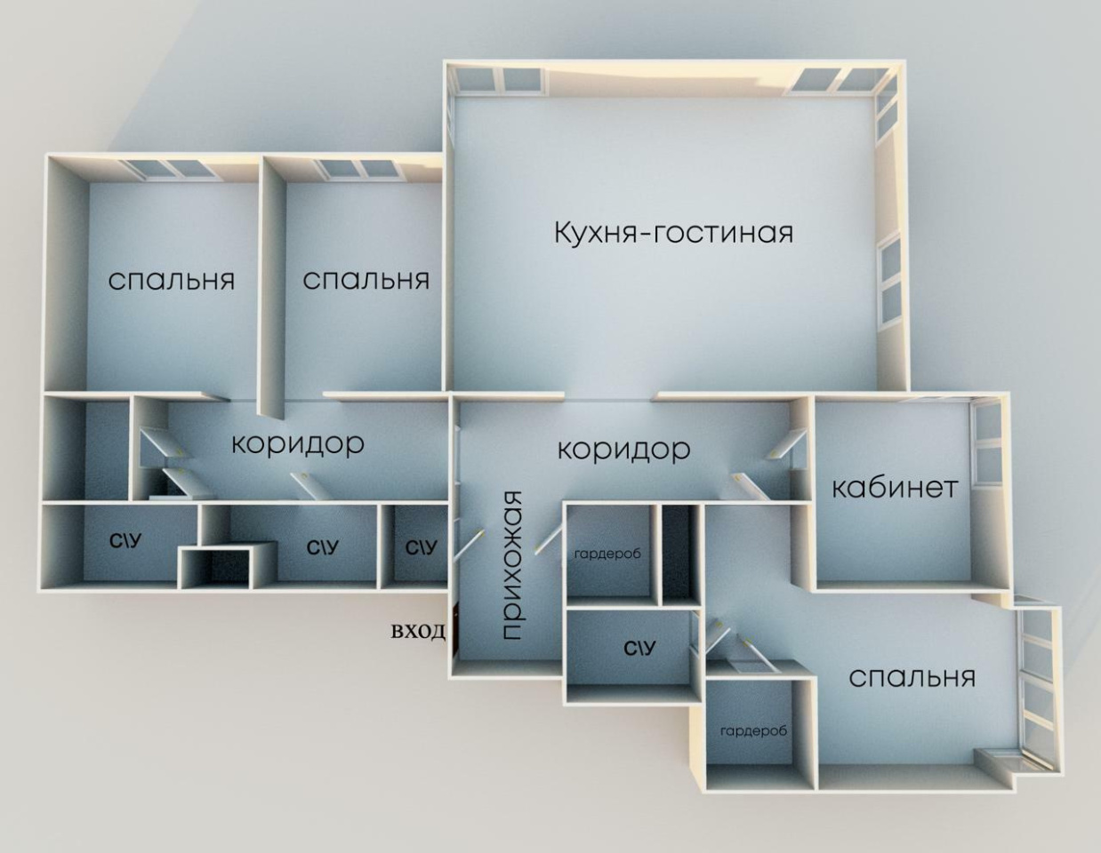 - мастер-спальня супругов со своей приватной ванной комнатой и гардеробной